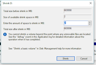 දැන් වැඩිපුර free තියෙන partition එකක් බලලා එක Right-click කරන්න shrink volume කියන එක ඔබන්න